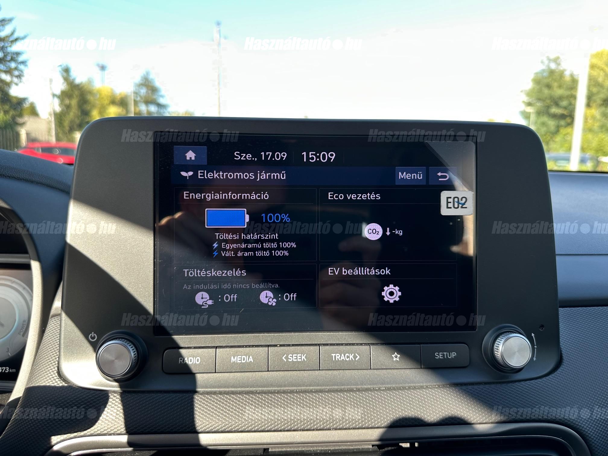 Áfás ár! Facelift kivitelű Gyári Garanciával rendelkező sérülésmentes elektromos Hyundai Kona 39kwh akkumulátorral amellyel akár 350 kilométert is megtehetünk egy töltéssel mindössze 44.e kilométer futásteljesítménnyel keresi új gondos családját. Végig Hyundai Márkaszervizben szervizelt lekövethető előélettel rendelkező megkímélt állapotú autó. Különleges Tengerkék gyönygház metál színben. Extra lista: Adaptív távolságtartó tempomat kormányzás rásegítéssel, Vészfékasszisztens, Frontális ütközést elkerülő asszisztens aktív segítséggel, DAW vezető figyelmeztetése jármű elindulásakor, Winter csomag: 2x Ülésfűtés-Fűthető bőr Kormány-Tükörfűtés, Tolatókamera PDC-parkradar rendszerrel kiegészítve, Auto-Hold elektromos kézifékrendszer, Több zónás Digitális és Automata klíma, Állítható bőr-multikormány F1 váltóval amely lehetővé teszi a visszatöltés szabályozását róla vezérelhető hifivel és beszédvezérléssel, Kulcs nélküli nyitás-zárás comfort bejutás, Multifunkcionális érintők jelző Apple Carplay-Android auto telefontükrözési lehetőség, Két tónusú kárpitozás a széleken díszvarrással, Eső szenzor automatikus bekapcsolással, Led nappali menetfény, Ködlámpa elöl-hátul, Gyári prémium hifirendszer 6x hangszóróval, Start-stop kulcs nélküli indítás, Galvanizált váltógombok, Drive mód választó (ECO, COMFORT, SPORT), Bluetooth telefonos kihangosítás, USB-12V, Légzsák 6x, ISOFIX, Elektromosan állítható-fűthető tükrök automatikus sötétedéssel, Elöl-hátul könyöklő 4x pohártartóval, Fedélzeti komputer, Hátsó szélvédőfűtés, ESP-ASR-ABS-Guminyomás ellenőrző, Gyári aerodinamikus bicolor Style alufelnik újszerű Michelin gumikkal, Gyári otthoni töltővel, Két gyári kulcs. Nyílt és Zártvégű Lízingre is megvásárolható 20%-tól FIX forint alapú törlesztővel.