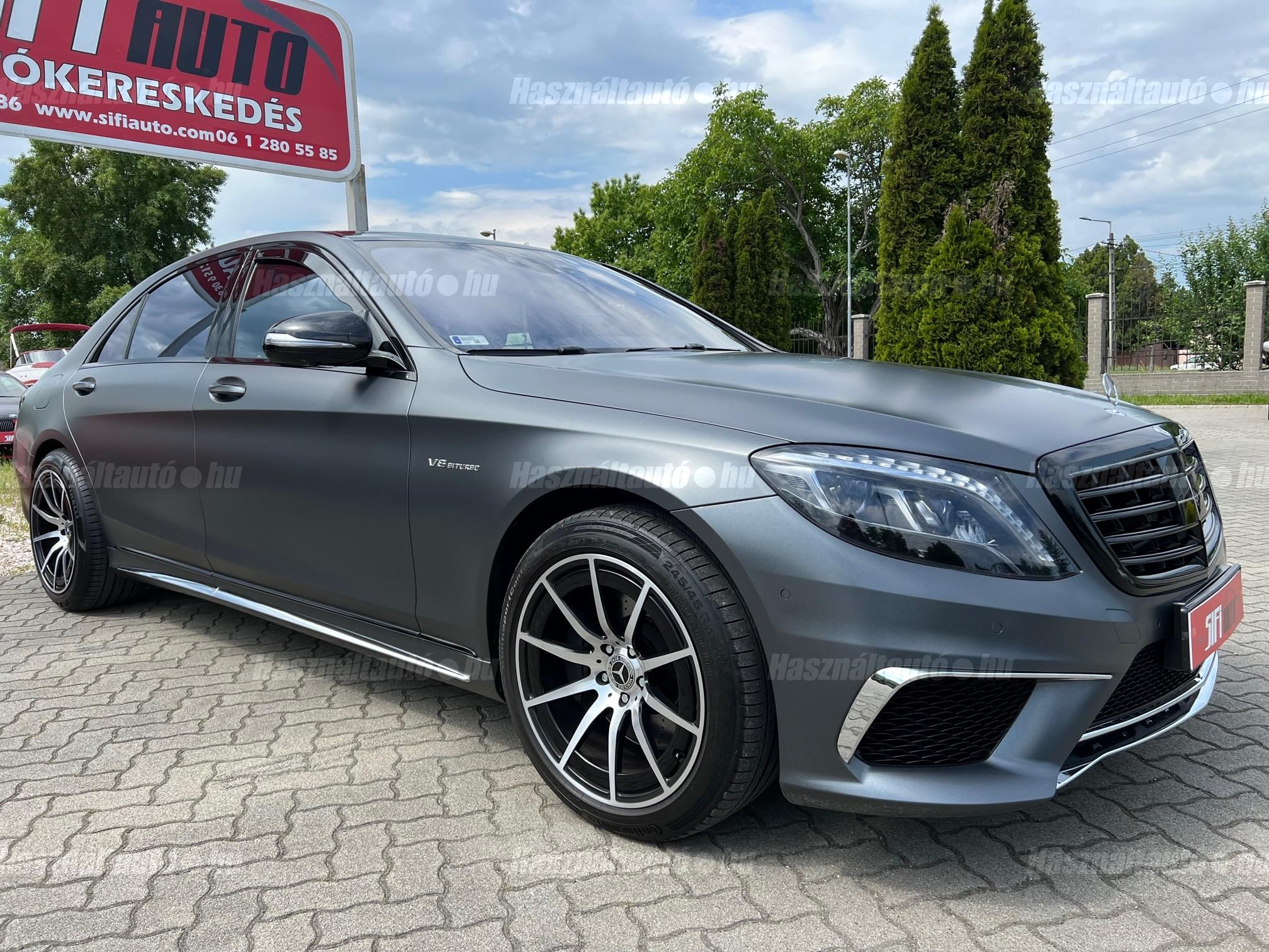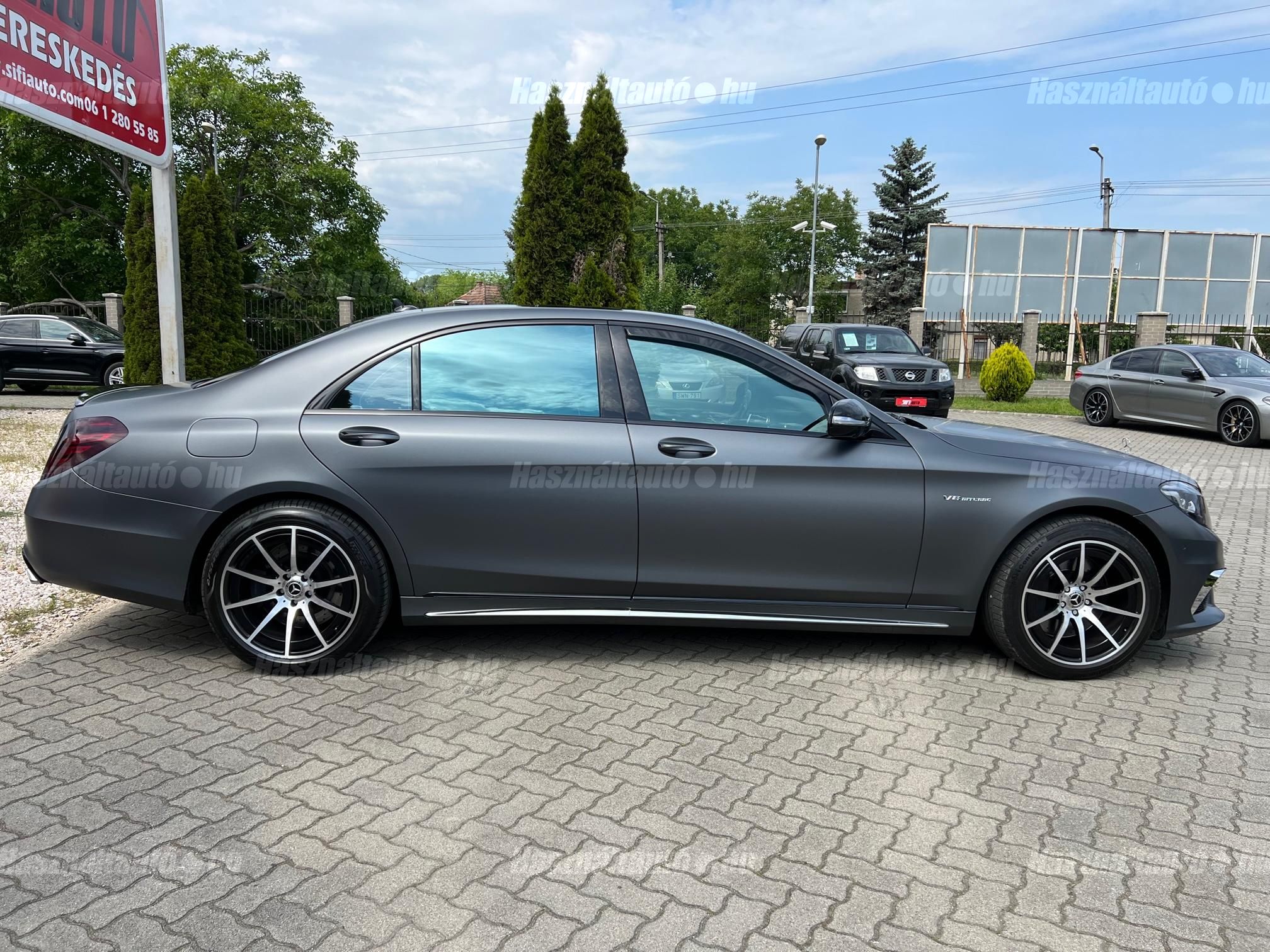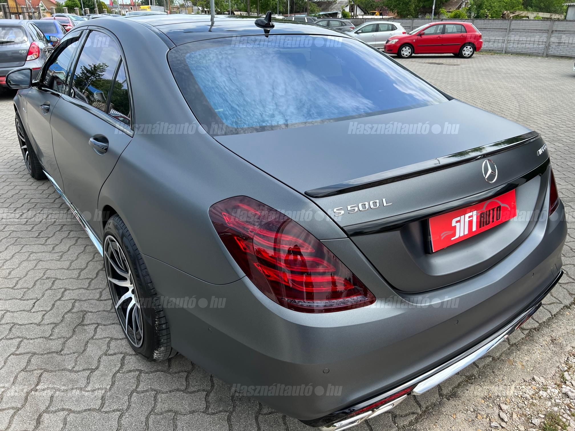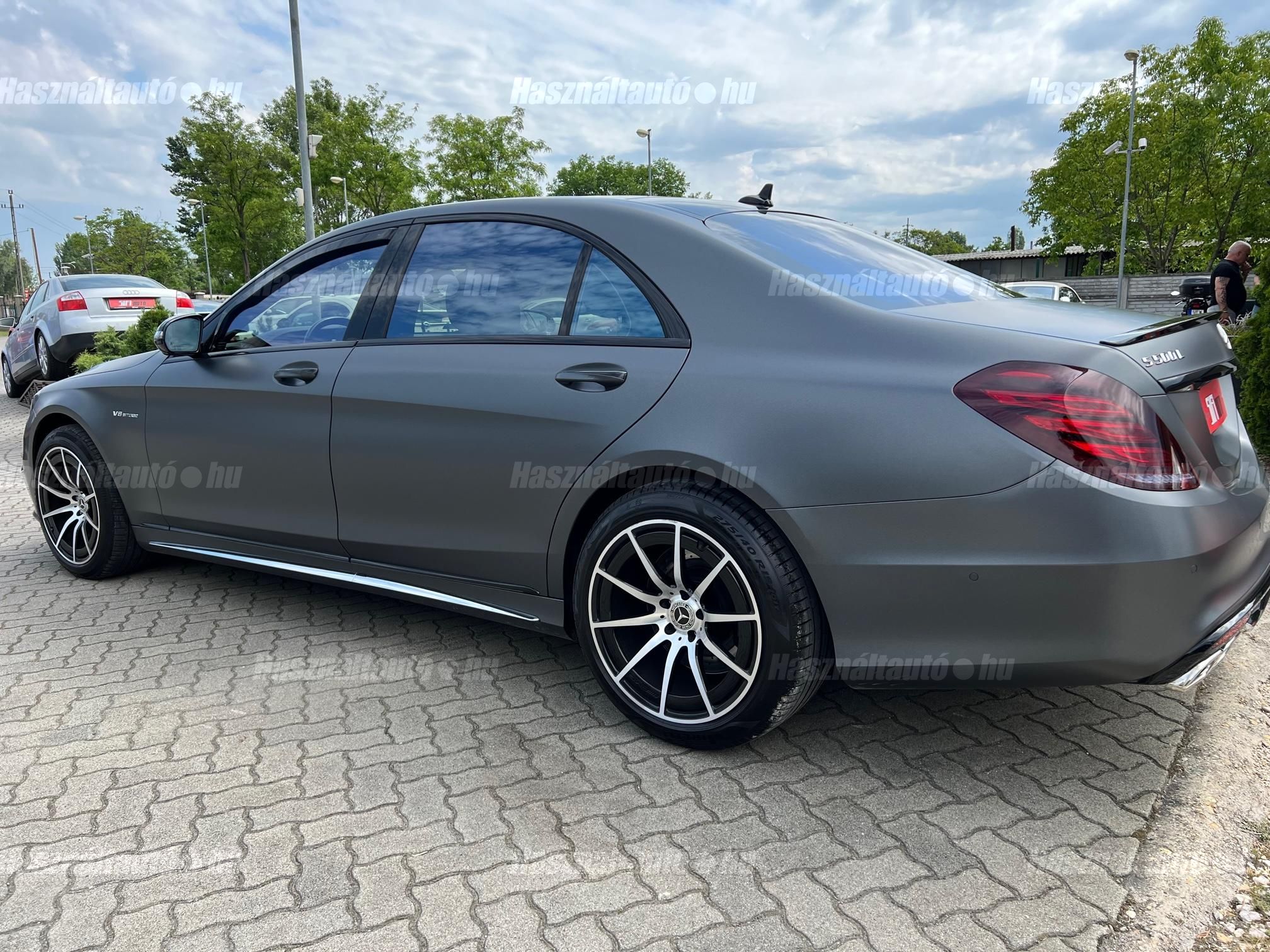 Magyarországi vásárlású Gyönyörű egyedi kinézetű Mercedes S500 Long S63 AMG Optikával keresi új tulajdonosát! Sérülésmentes végig szervizelt leinformálható jármű. Matt szürke fóliával ellátott ami alatt az eredeti ezüst metál fényezés természetesen hibátlan. Akár még 3 év kiterjesztett garanciával. Az autóhoz megvannak az eredeti lökhárítók amit adunk hozzá! Nemrég szervizelve(komplett fékek, összes olaj, Motortartó bak, stb) Extrái: Minden irányban motoros memóriás fűthető és Hűthető Masszírozós ortopéd ülések, Aktív ülés, Bőr varrott műszerfal, Nyitható panoráma tető napvédő rolóval, Sávtartó-ráfutásgátló, holttér figyelő, Ütközést megelőző rendszer, Önvezető rendszer, 12+1 légzsák, 360 körkamera kiegészítve beparkoló automatikával, Digitális több zónás klímautomatika, Mercedes GT Alufelnik újszerű nyári gumikkal, Ajtó és csomagtér szervó, Bőr multikormány F1 kormányváltóval, Prémium 3D Burmester Hifi hangrendszer dvd, cdtár, beszédvezérlés, tel. bluetooth, Navigáció Magyarország és Eu. térképpel, Nemesfa és chrome dekor betétek, Led Adaptív Bi-Xenon lámpák, Hővédő üvegezés, Armatic állítható légrugózás, 7-G Tronik automata váltó F1 Kormányváltóval választható eco, comfort, sport mód. 2db gyári kulcs. Igény estén gyári AMG felnik téli gumikkal. Hitelre 20%tol fix forint alapú törlesztővel is megvásárolható.