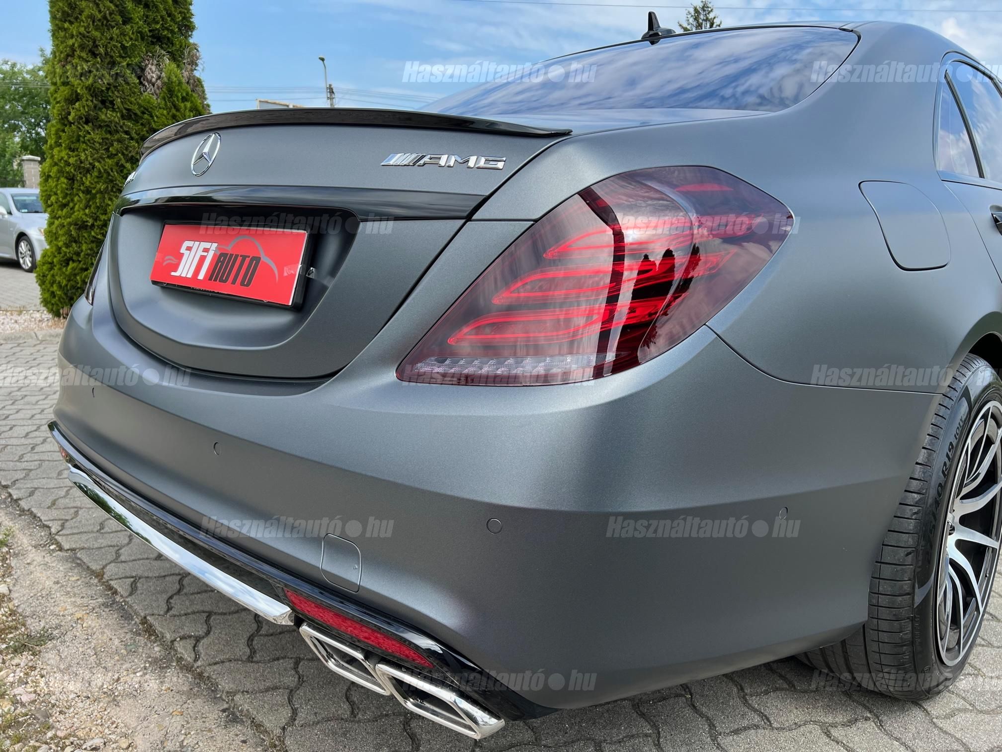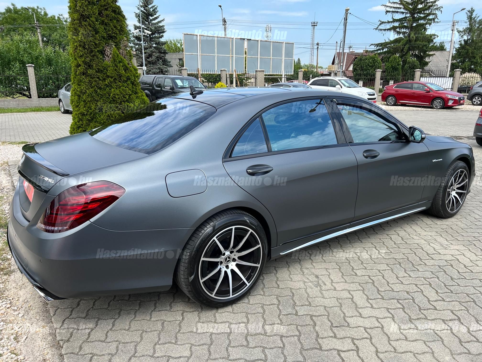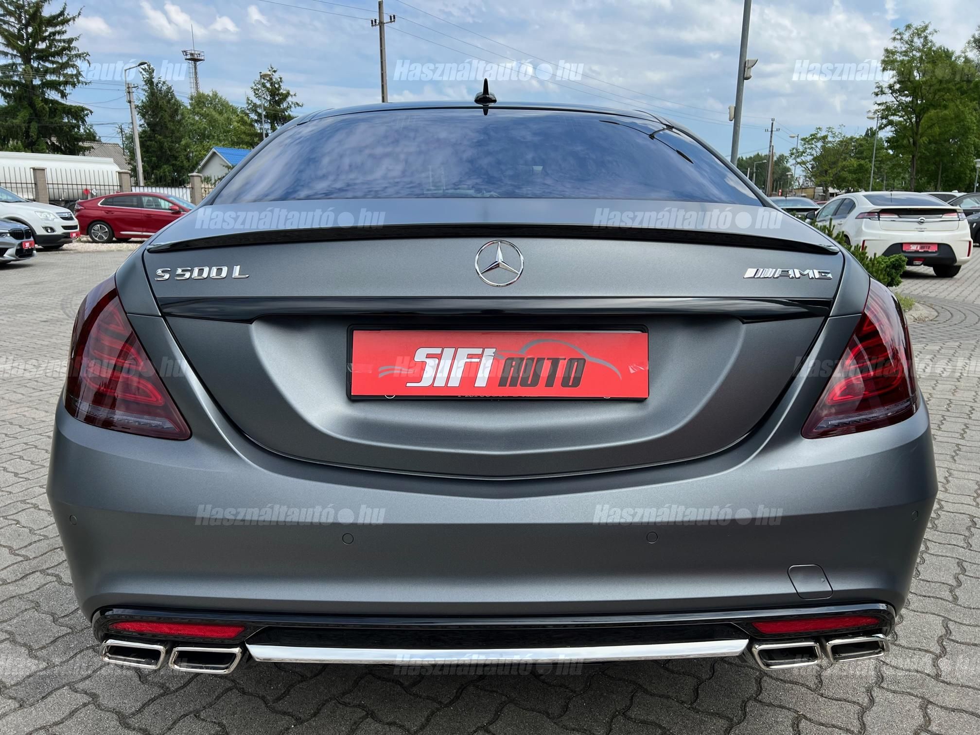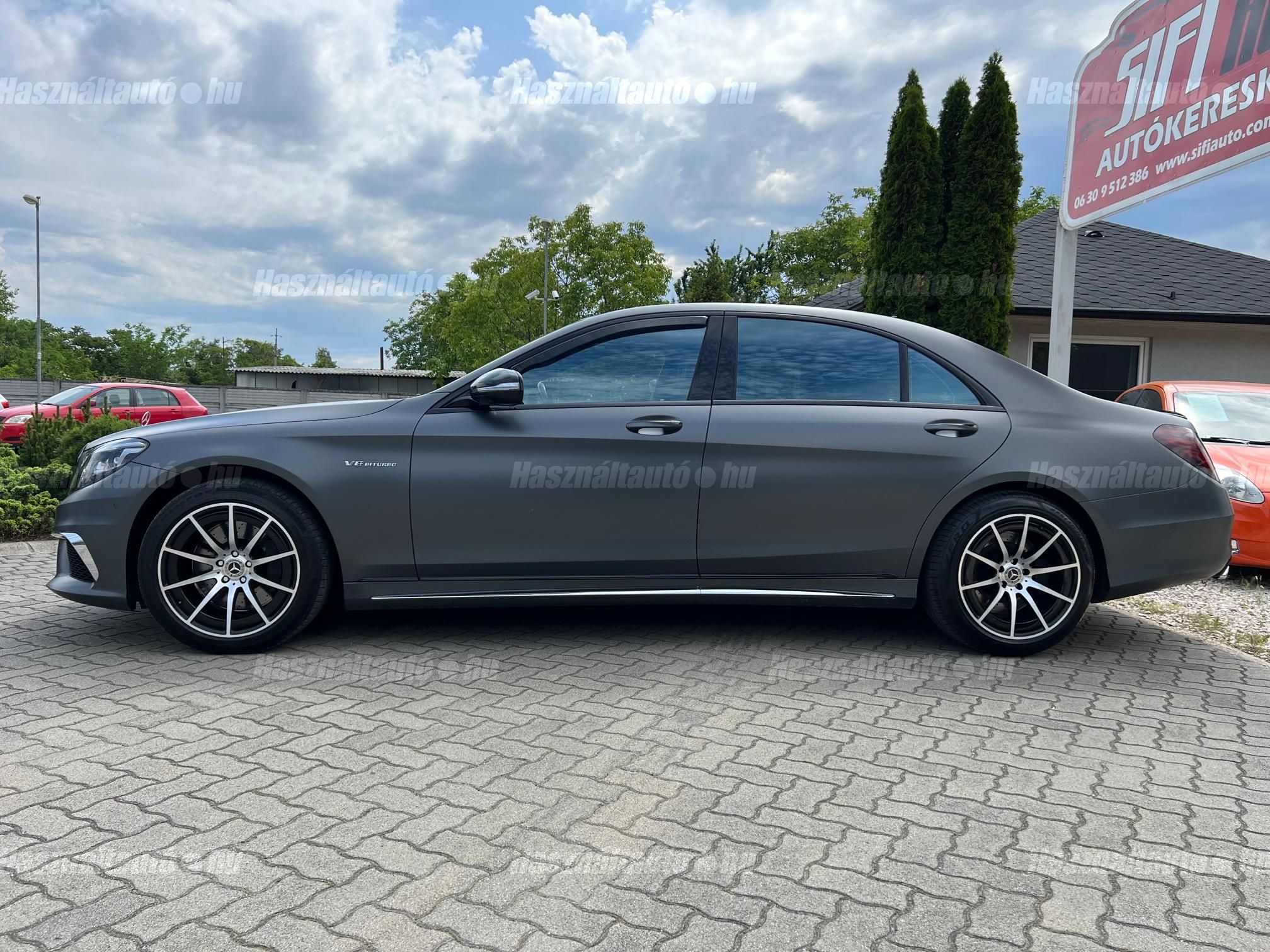 Magyarországi vásárlású Gyönyörű egyedi kinézetű Mercedes S500 Long S63 AMG Optikával keresi új tulajdonosát! Sérülésmentes végig szervizelt leinformálható jármű. Matt szürke fóliával ellátott ami alatt az eredeti ezüst metál fényezés természetesen hibátlan. Akár még 3 év kiterjesztett garanciával. Az autóhoz megvannak az eredeti lökhárítók amit adunk hozzá! Nemrég szervizelve(komplett fékek, összes olaj, Motortartó bak, stb) Extrái: Minden irányban motoros memóriás fűthető és Hűthető Masszírozós ortopéd ülések, Aktív ülés, Bőr varrott műszerfal, Nyitható panoráma tető napvédő rolóval, Sávtartó-ráfutásgátló, holttér figyelő, Ütközést megelőző rendszer, Önvezető rendszer, 12+1 légzsák, 360 körkamera kiegészítve beparkoló automatikával, Digitális több zónás klímautomatika, Mercedes GT Alufelnik újszerű nyári gumikkal, Ajtó és csomagtér szervó, Bőr multikormány F1 kormányváltóval, Prémium 3D Burmester Hifi hangrendszer dvd, cdtár, beszédvezérlés, tel. bluetooth, Navigáció Magyarország és Eu. térképpel, Nemesfa és chrome dekor betétek, Led Adaptív Bi-Xenon lámpák, Hővédő üvegezés, Armatic állítható légrugózás, 7-G Tronik automata váltó F1 Kormányváltóval választható eco, comfort, sport mód. 2db gyári kulcs. Igény estén gyári AMG felnik téli gumikkal. Hitelre 20%tol fix forint alapú törlesztővel is megvásárolható.