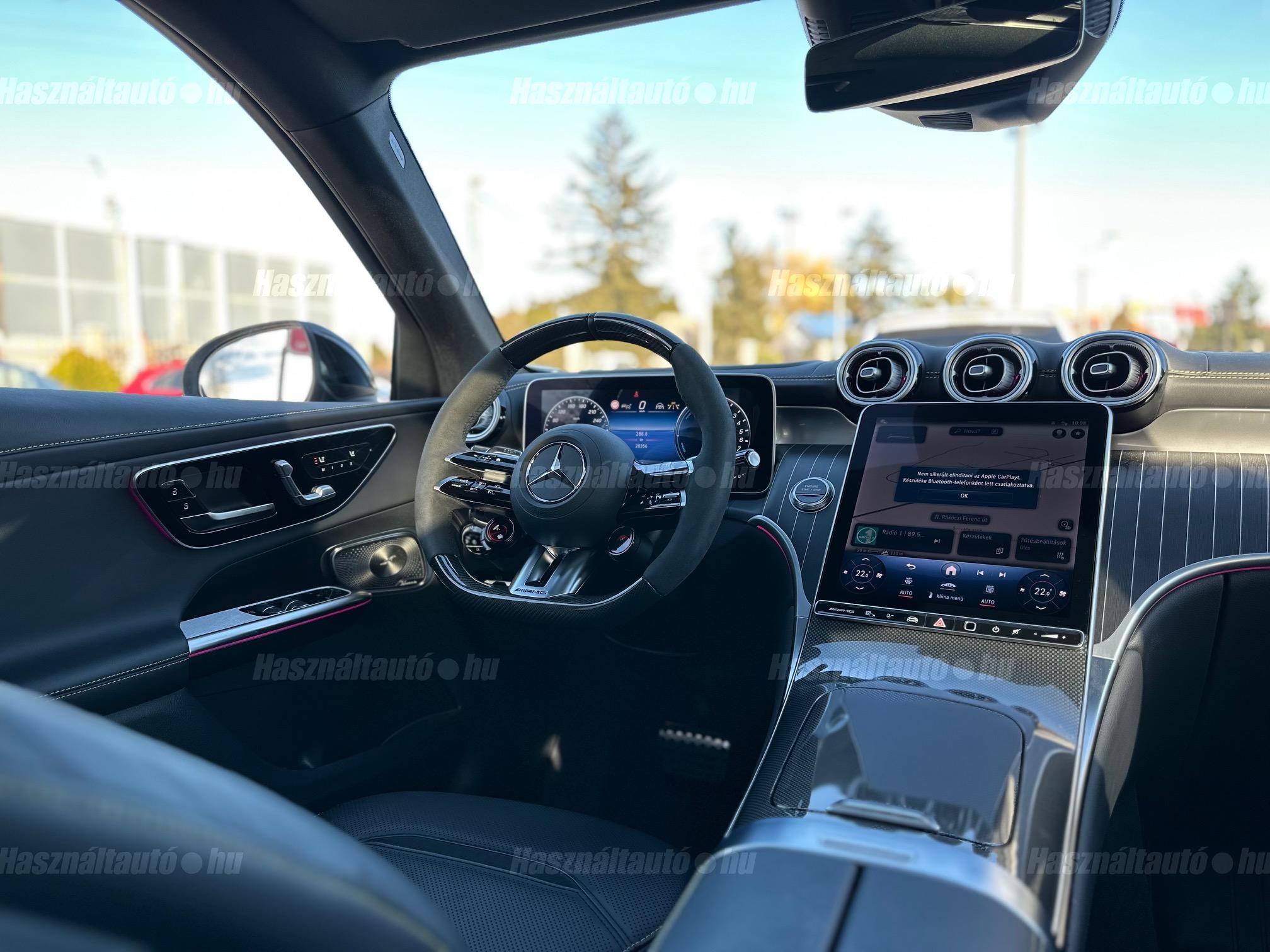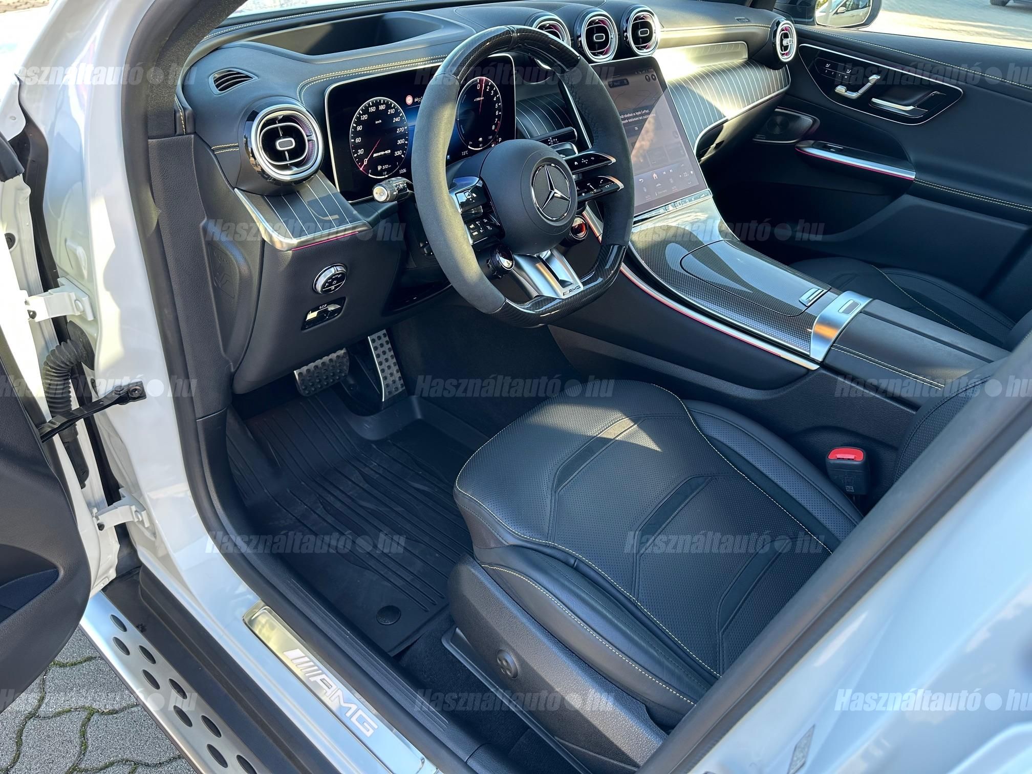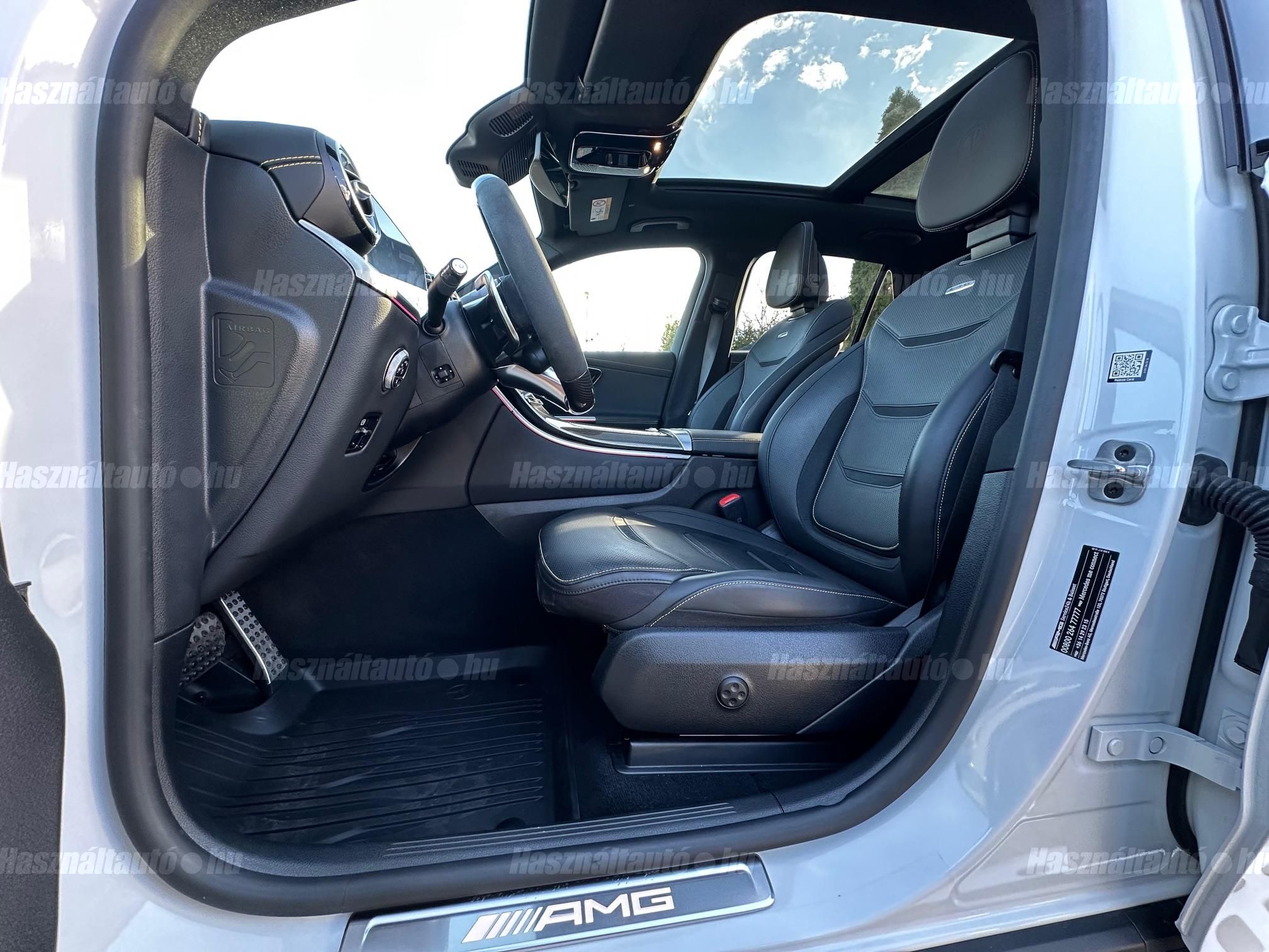 Az autó megtekintéséhez időpont egyeztetés szükséges! Magyarországon újonnan rendelt egyedileg összeállított Sérülésmentes Merecedes-AMG GLC 63S E-Performance Hybrid különleges NIGHT Package Carbon csomaggal és Manufaktur gyöngyházmetál fényezéssel keresi új gondos tulajdonosát a legmagasabb felszereltségben. 2028 Februárig Gyári Garanciával rendelkező autó lekérdezhető előélettel újszerű-sérülésmentes állapotban. DOKUMENTUM FÜL alatt megtalálható Merecdes Hovány által lekérdezett szervizelőzményei, igény esetén a teljes extra listát elküldjük! Főbb extrái: Elektromosan állítható Night Package AMG fűthető-szellőztethető fekete nappabőr ülések sárga cérnával varrva memóriás funkcióval 4 irányba állítható gerinctámasszal vezető és utas oldalon egyaránt, AMG Performance karbonszálas fűthető alcantara-bőr kormány, Head-up display kiterjesztett valóság funkcióval, 360 fokos kamerarendszer, Digital-Led mátrix fényszórók, Prémium Burmaster 3D térhatású hangzás, Rengeteg védelmi funkicó: Aktív sávtartó-sávváltó asszisztens, Adaptív távolságtartó asszisztens, Vészfékasszisztens, Ütközésre való felkészítés-figyelmeztetés, Hátsó keresztirányú forgalomra való figyelmeztetés, Útvonal alapú sebességfigyelmeztetés-táblafelismerő rendszer, Pre-safe védelmi rendszerek (oldalirányú impulzus, utasvédelem). Air-balance csomag, Apple_carplay és Android autó telefontükrözés, Gyári magyarnyelvű menürendszer, Navigáció Magyarország és Európa térképpel, Piros AMG Sport fékek, Matt fekete AMG kovácsolt keresztküllős design kerekek, Hátsótengely-kormányzás, Elektromos csomagtérajtó, AMG Driver's csomag, AMG Track Pace csomag, AMG Active Ride Controll futómű, Keyless Go kulcs nélküli nyitás-zárás, AMG világítós küszöbök, Ambient hangulatvilágítás, Két gyári kulcs + töltőkábelek. Teljes extra listáért keressen minket a megadott telefonszámokon vagy emailben. Hitelre 20%tol FIX forint alapú törlesztővel is megvásárolhatja kedvező feltételekkel!